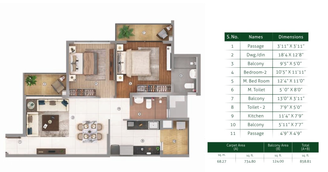 | 2 BHK | 858 sq.ft | On Request |