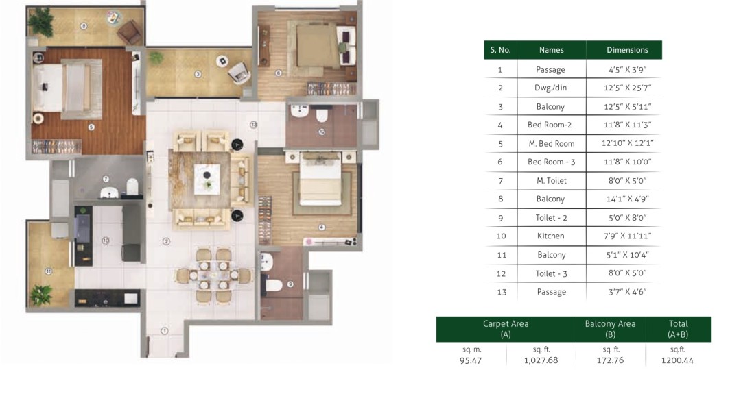 | 3 BHK | 1200 sq.ft | On Request |