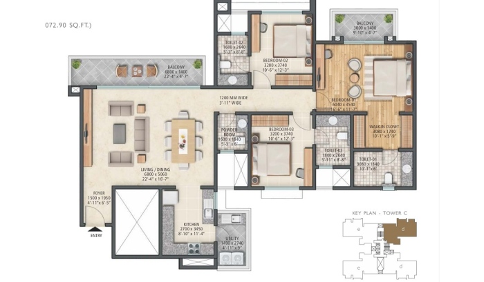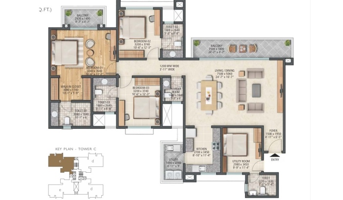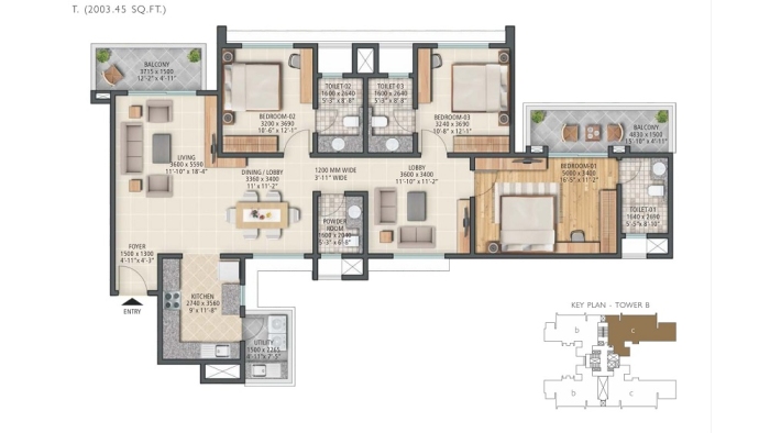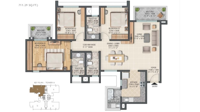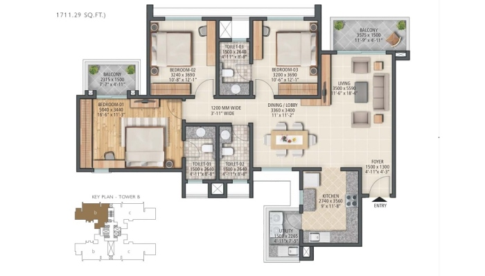 3 BHK 1711.29 sq.ft On Request